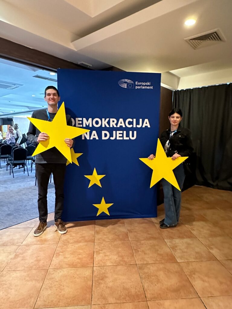 Upravnu školu, koja je višegodišnji sudionik EPAS programa, predstavljali su učenica Klara Cerovac u ulozi mlade ambasadorice i nastavnik Dino Čović u ulozi senior ambasadora.